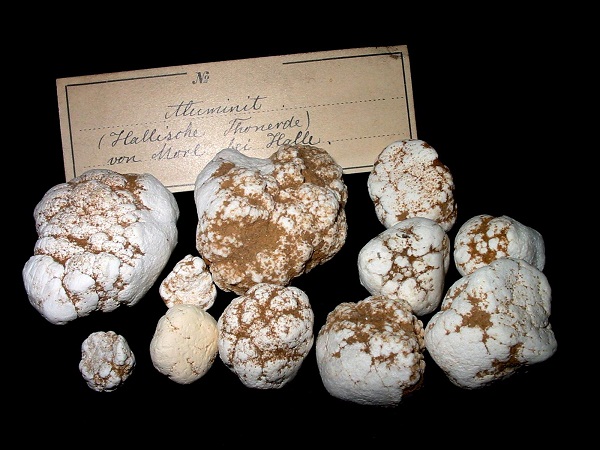 Foto zeigt eine größere Kleinstufe mit "blumenkohl-artigem" bzw. knolligem Aluminit aus England aus meiner Sammlung.