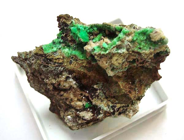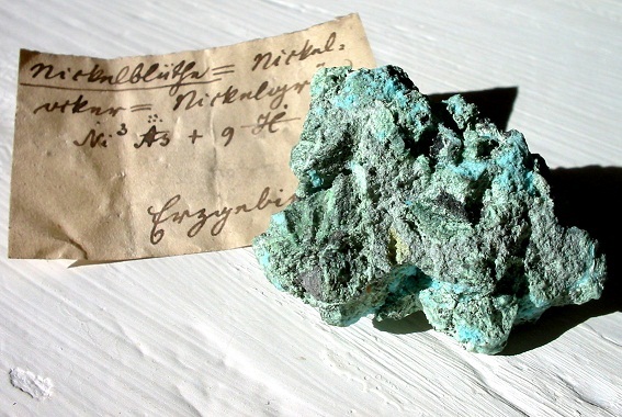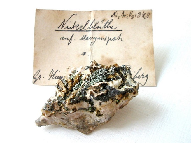 Fotos zeigen typisch apfelgrüne Annabergit xx vom km3, Lavrion, Attika, Griechenland.