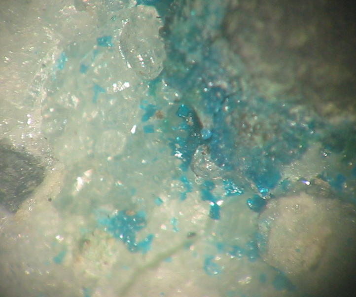 Foto zeigt eine Kleinstufe mit seltenem blauem, kristallinem Diaboleit