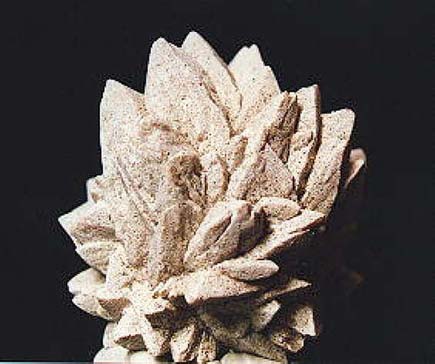 Foto 2 zeigt sandfarbene Pseudomorphose von Calcit nach