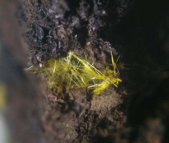 Fotos zeigen nadlige Hoelit-Kristalle (BB ca. 3 mm) vom Fundort Kladno in der Tschechischen Republik.