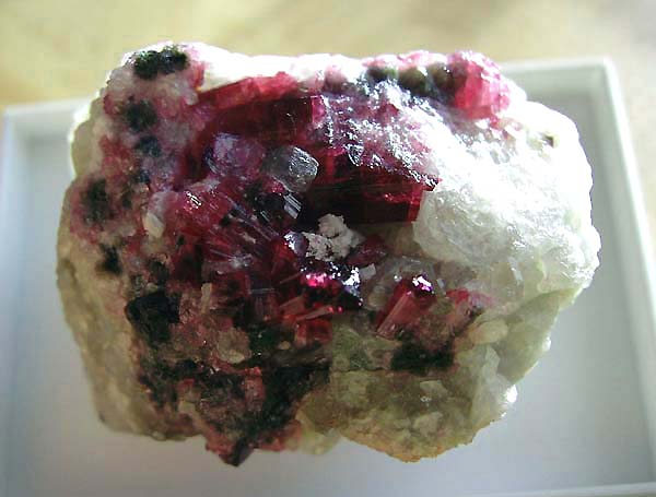 Das oberste Foto zeigt anstelle von Elbait (Rubellit) vermutlich eher einen roten "Lithium-Olenit" (= Olenit-Varietät) oder sogar roten Darrelhenryit.