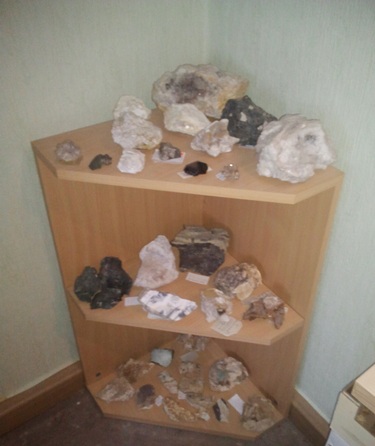 | Information: | Regal mit Mineralien aus den Marmorzügen des Fichtelgebirges (Johanneszeche und Stemmas) |