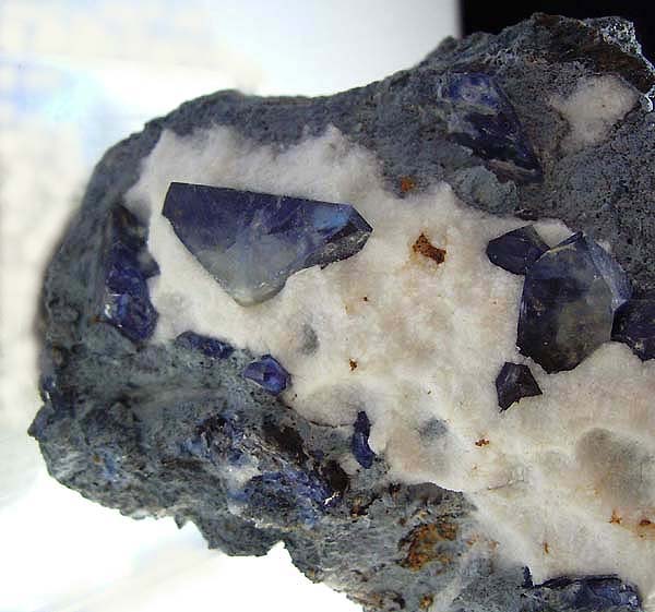 | Information: | Kleinstufe mit 2 cm langem "tintenblauen" Kristall in natriumreichem Marmor |