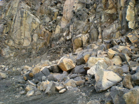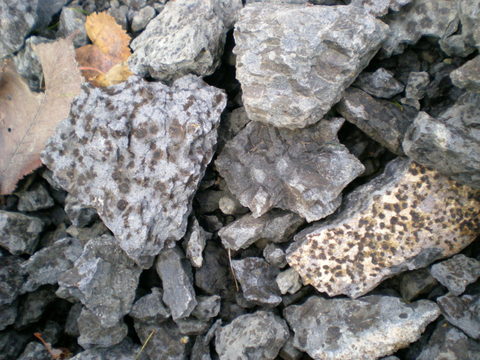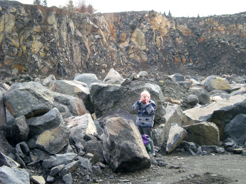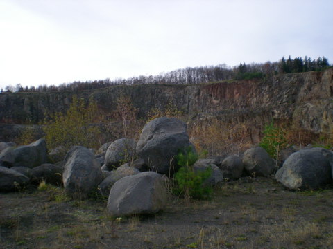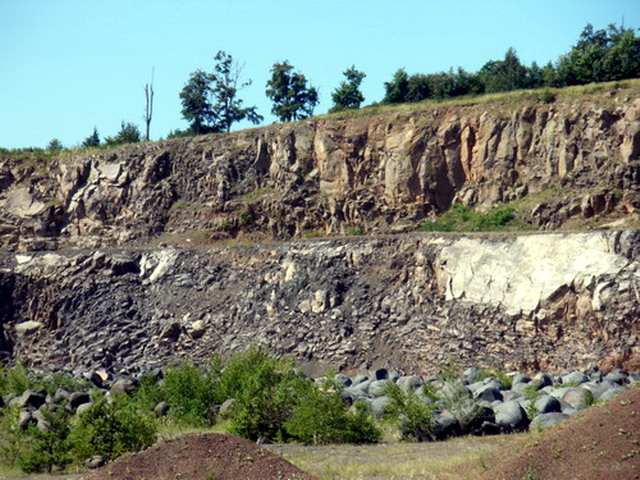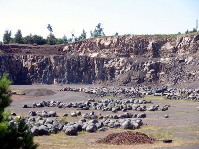 Abgebaut wird ein Basalt,reich an Drusen und Toneinschlüssen.