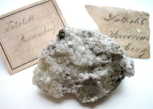 Andreasberg, südlich des Brocken im östlichen Oberharz von Niedersachsen gelegen, ist ein berühmtes Ganggebiet mit Bleierzen sowie lokal sehr reichlich Silber und Arsen. Darüber hinaus wurden Funde von hervorragenden, äußerst vielgestaltigen Kristallen bekannt – so z.B. von Calcit, Pyrargyrit, Polybasit und Dyskrasit. Zu den weiteren Mineralien von dort zählen ged. Silber, Stephanit, Löllingit, Fahlerze, Nickelin, Breithauptit, Pyrostilpnit, Apophyllit (xx !), Harmotom, Stilbit und Analcim.