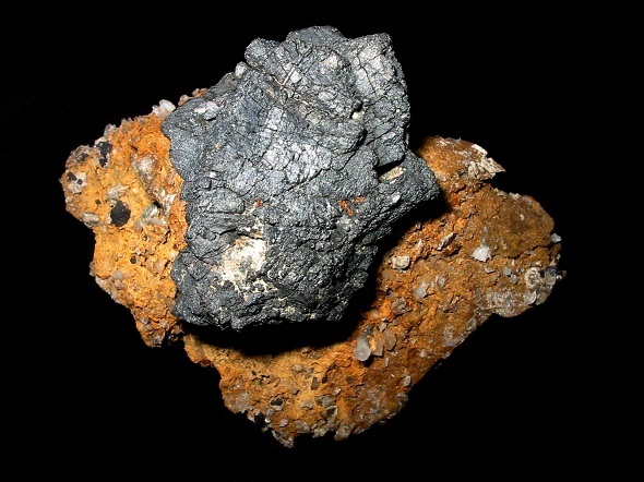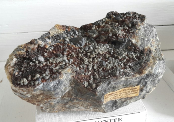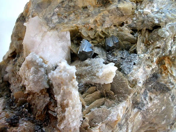 Von der Grube Apollo bei Raubach im Westerwald stammen diese 6 mm großen "Rädelerz"-xx auf Siderit. |